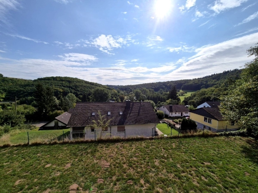 Das freistehende Einfamilienhaus liegt als erstes Haus in einer ruhigen Straße auf einem geraden Grundstück mit nur einem direkten Nachbarn. Die Lage ist besonders ruhig und privat und bietet vom Balkon aus eine herrliche Aussicht über die umliegende Natur.