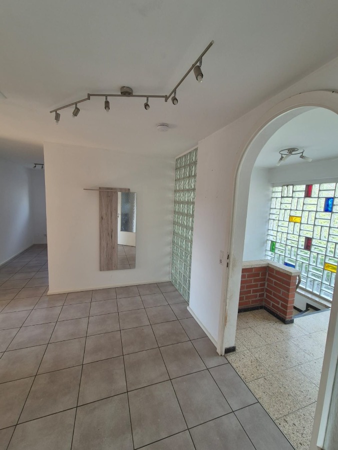 Erdgeschoss: 3 Zimmer, Küche mit moderner Einbauküche und großem Side-by-Side Kühlschrank mit Eiswürfelfunktion, großzügiges Wohnzimmer mit Zugang zum Balkon (zweiflügelige Tür), helles Badezimmer mit Fenster, Dusche oder Badewanne sowie Handtuchheizkörper. Innenbereich mit weißen Türen und gepflegten manuellen Rollläden.