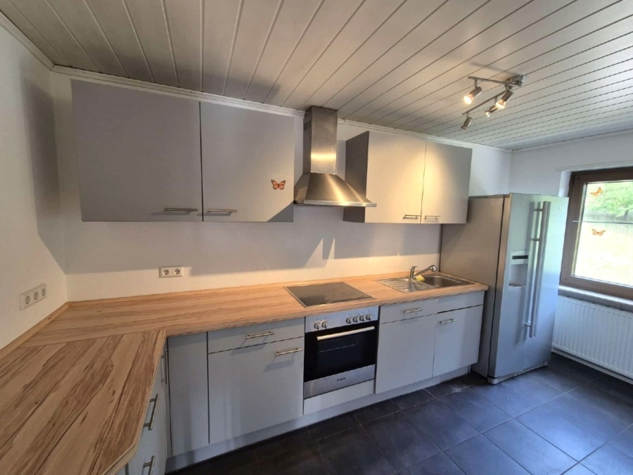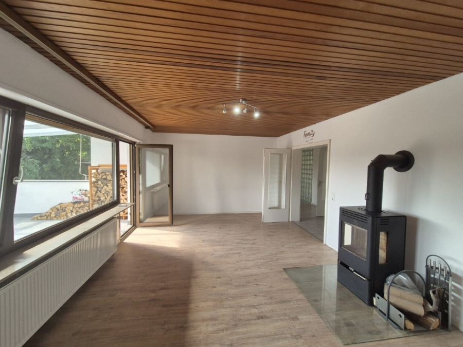 Das Einfamilienhaus steht seit 1–2 Monaten leer und ist sofort bezugsbereit. Im großzügigen Wohnzimmer sorgt ein gemütlicher Holzofen für wohlige Wärme und eine angenehme Atmosphäre.
