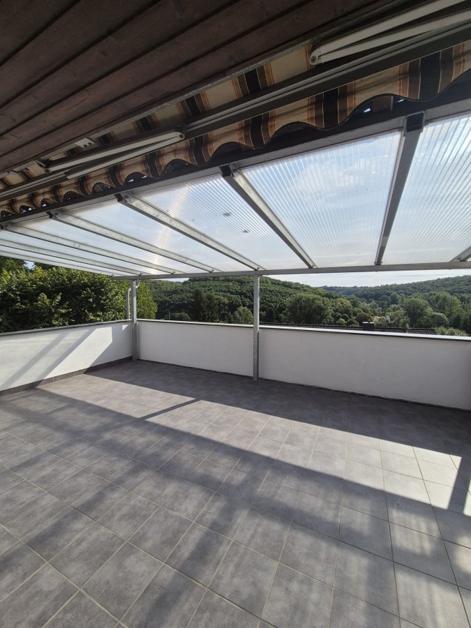 Besonders hervorzuheben ist der großzügige, überdachte Balkon (ca. 32 m²) mit herrlichem Fernblick nach Osten – ideal für entspannte Stunden mit Aussicht. Die Einzäunung des Grundstücks ist bereits vorhanden. Zusätzlich stehen zwei Garagen mit elektrischem Sektionaltor zur Verfügung; eine davon verfügt über Starkstromanschluss und Wasseranschluss. Weitere 4–6 Stellplätze ergänzen das attraktive Angebot.