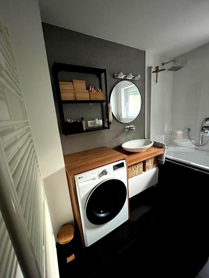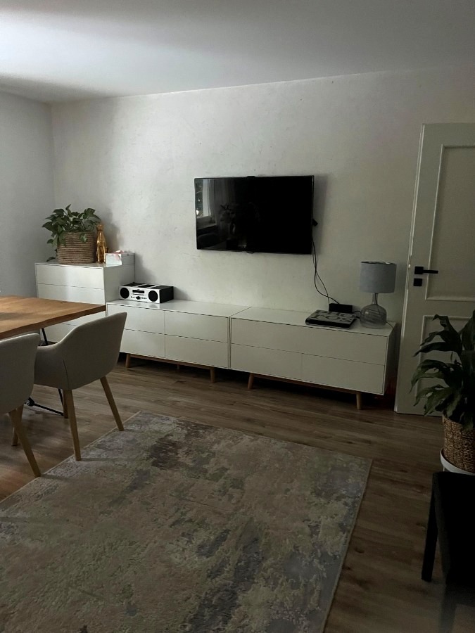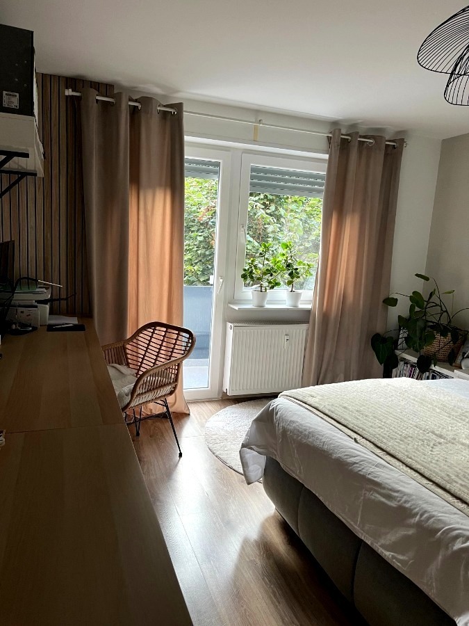 The well-designed layout features a separate kitchen equipped with high-quality, high-gloss fitted units and brand-name appliances. From here, as well as from the bedroom, you have direct access to the quiet balcony, which has an easy-care epoxy resin coating and is perfect for relaxation. The living room impresses with its brightness and comfortable size.